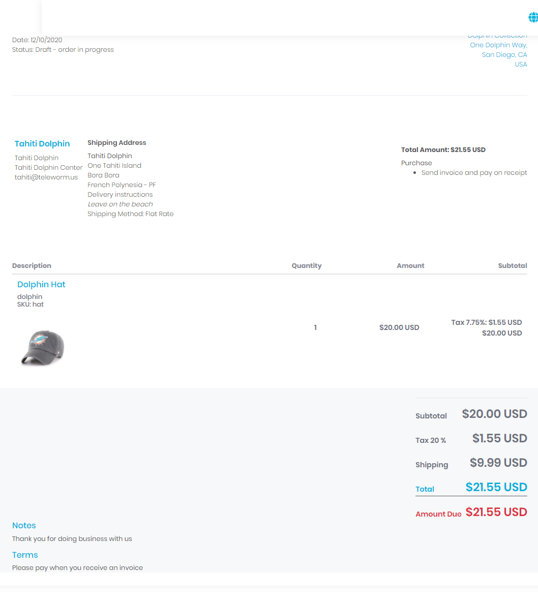 Note: You can't edit an order after it is send to a customer for payment or set paid. You need to revert back into the Draft status to update the order and resend it to a customer.