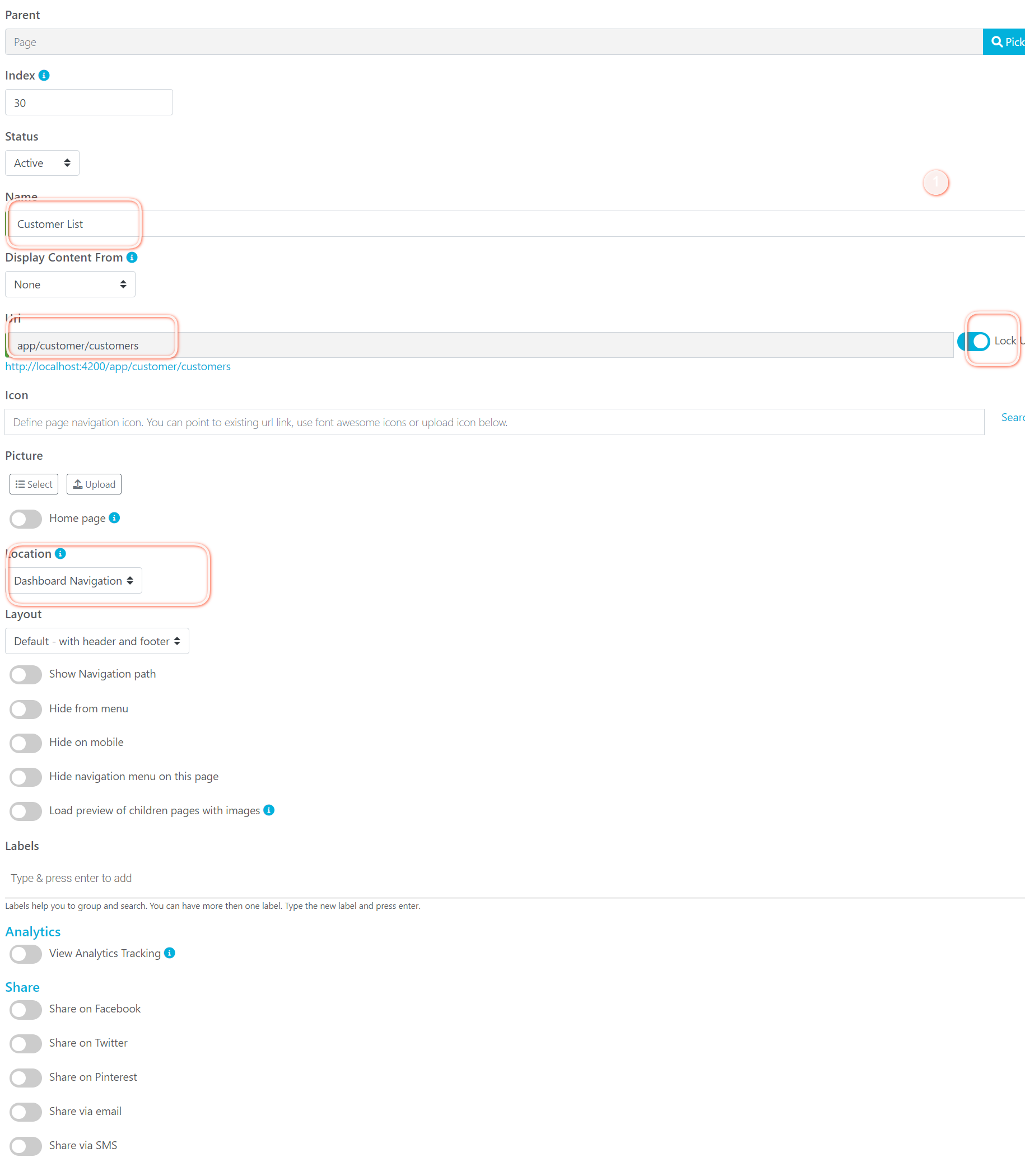 For example, if you want to a create a link to navigate to customers list follow this steps: