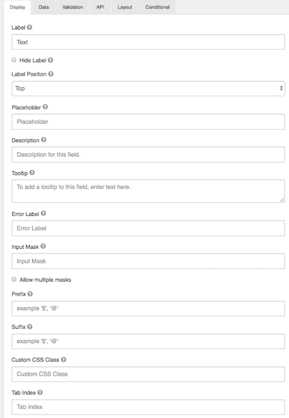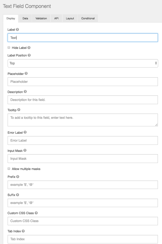 Note: The settings for a form component are different for each component type.