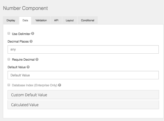 The Component ‘Data’ settings will allow you to configure the way your data is saved, rendered, or calculated on your field.