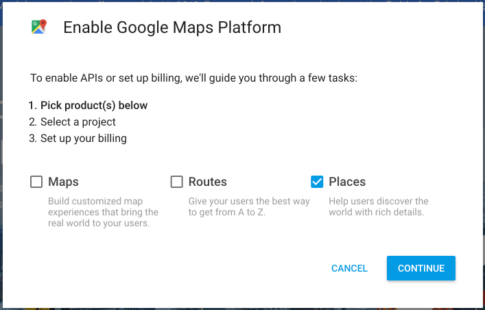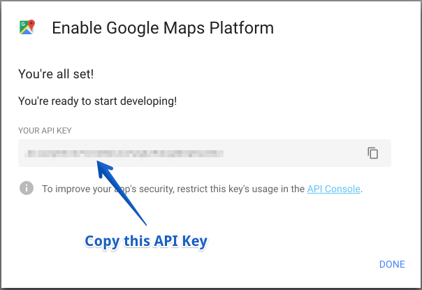 You will then paste this API key into the place on the Address component modal that says Google Maps API Key.