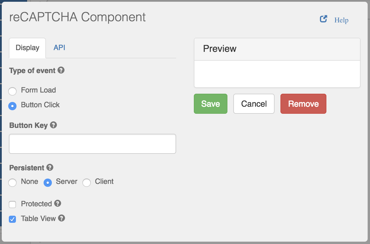 API Key of the button for reCAPTCHA component to react to (only for Button Click type of event)