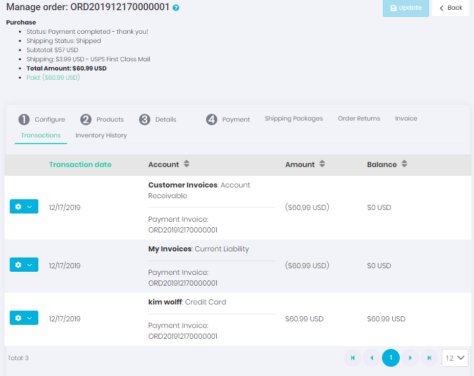 2. Next to the payment transaction, select dropdown option and click Refund.