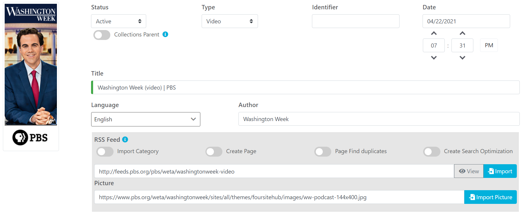 Note: by default only RSS feed information is imported. RSS feed content is not imported. It will be loaded on demand when RSS feed is displayed.