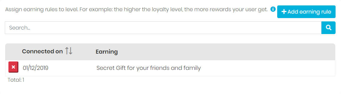 Click Add Earning Rule to add new rule or delete button to remove existing one.