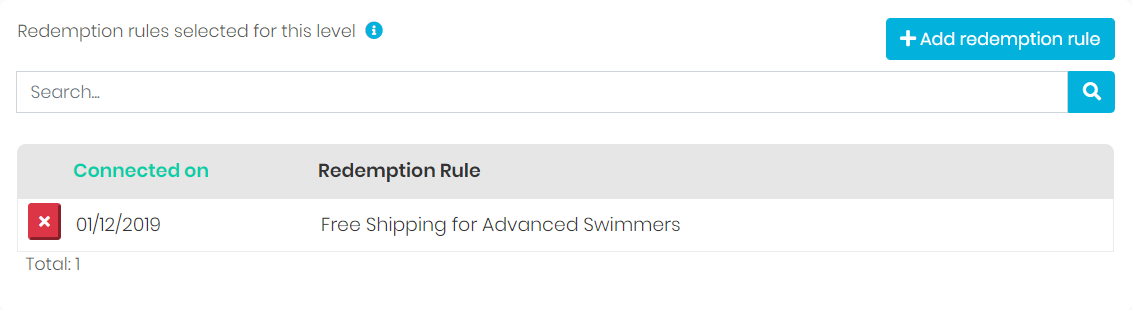 Click Add Redemption Rule to add new rule or delete button to remove existing one.