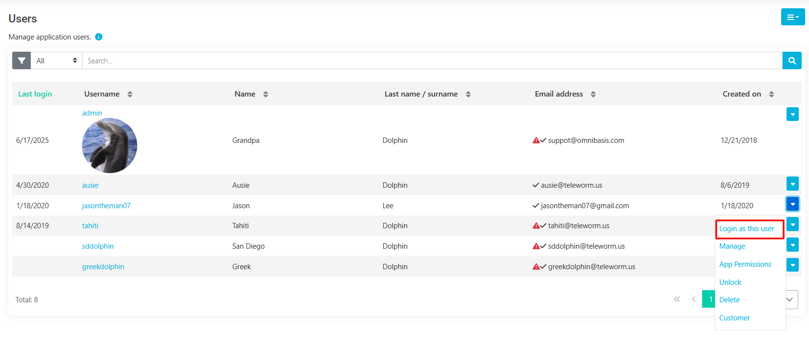 Navigate to Admin \ Users to see the list of users.