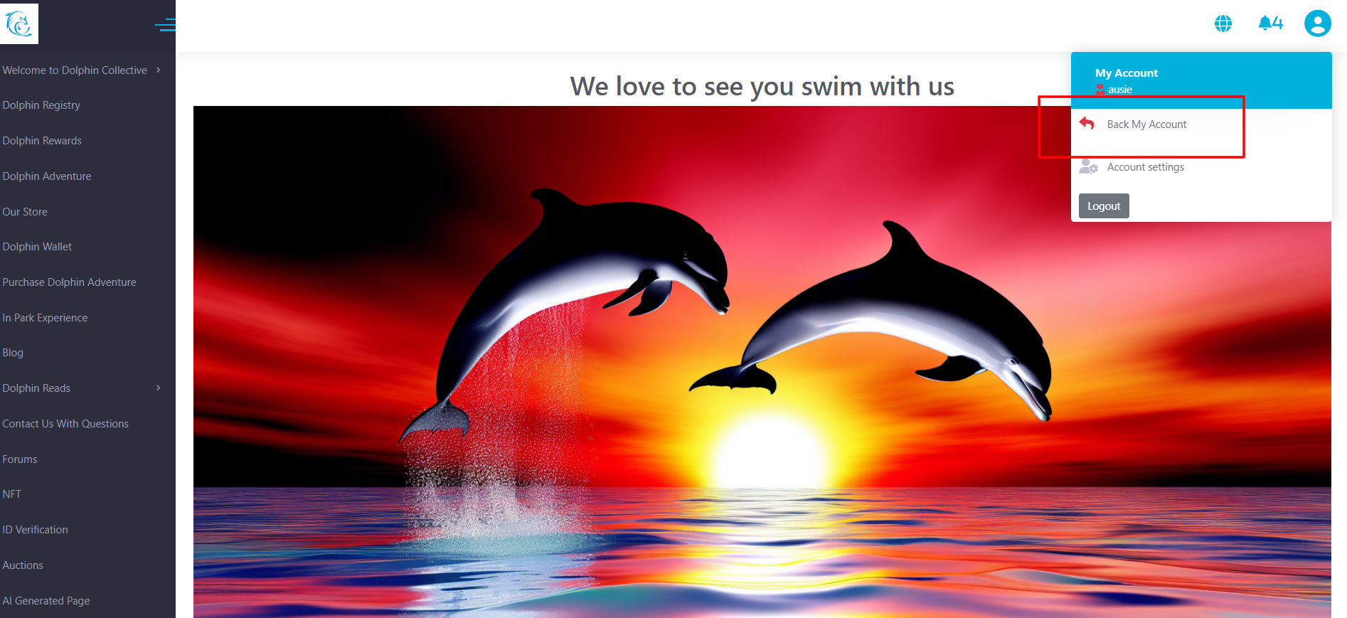 To return back to your account, click at the top right corner and select Back to my account