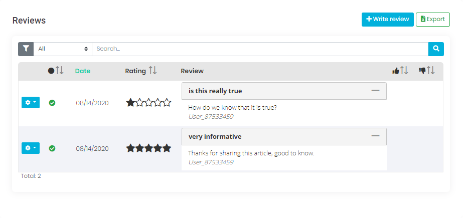 1. Depending on your configuration, customer will be asked to login to leave a content rating.  In addition, if collection was purchased by a customer, "Verified customer" badge will be displayed next to the review.