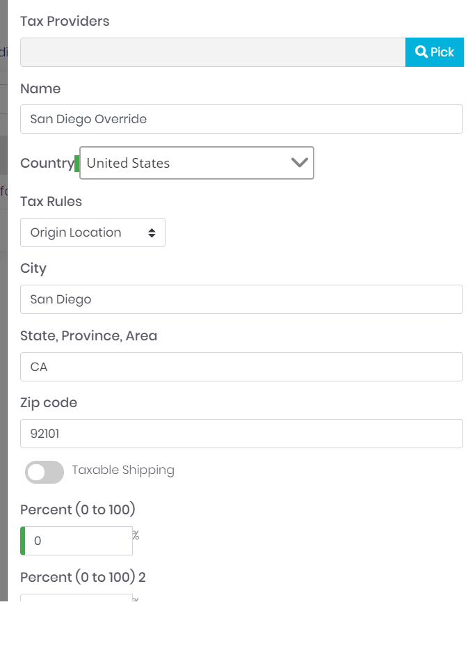 You might want to override a specific location for taxes. For example, we do not want to charge any taxes in San Diego, 92101 area code.