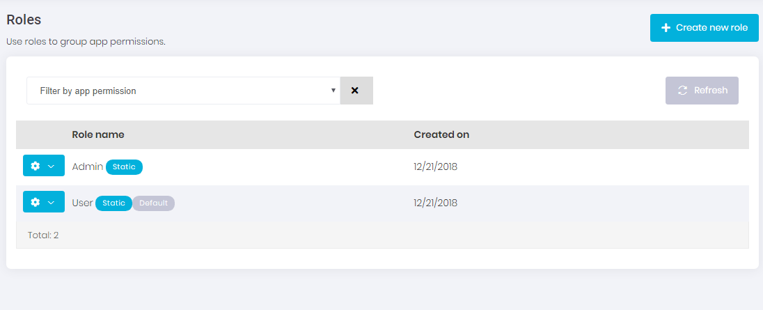 One or more roles can be set as Default. Default roles are assigned to newly added/registered users by default.